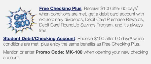 - Open a Student Checking Account and we’ll deposit $100 in the account after 60 days when you open a new Student Debit/Checking account with at least a $25 opening deposit